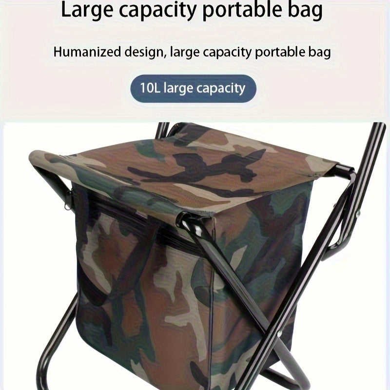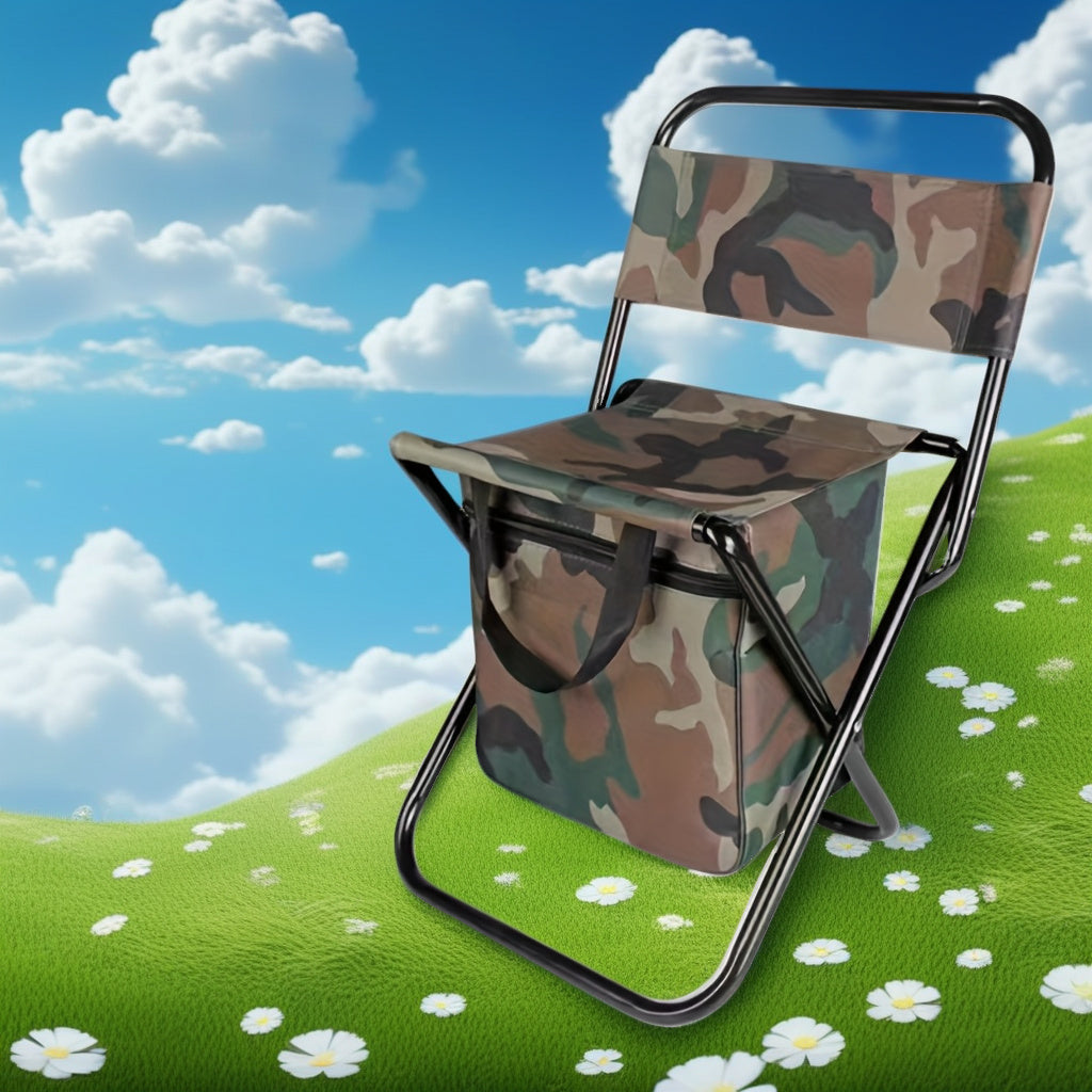 Portable Folding Chair with Built-in Cooler Bag - Camouflage Design, Sturdy Steel Frame, Ergonomic Handle & Backrest - Lightweight for Camping, Hunting, Beach, Fishing - Easy-Clean Material, Foldable Outdoor Seat, Camping Essentials, Durable Fabric